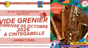 - Vide Grenier et Festa Occitania 5/10/2025Double évènement. Vide Grenier de Cintegabelle et Festa Occitania avec Suberdaurada Vide-Grenier de Cintegabelle… Lire la suite : Vide Grenier et Festa Occitania 5/10/2025